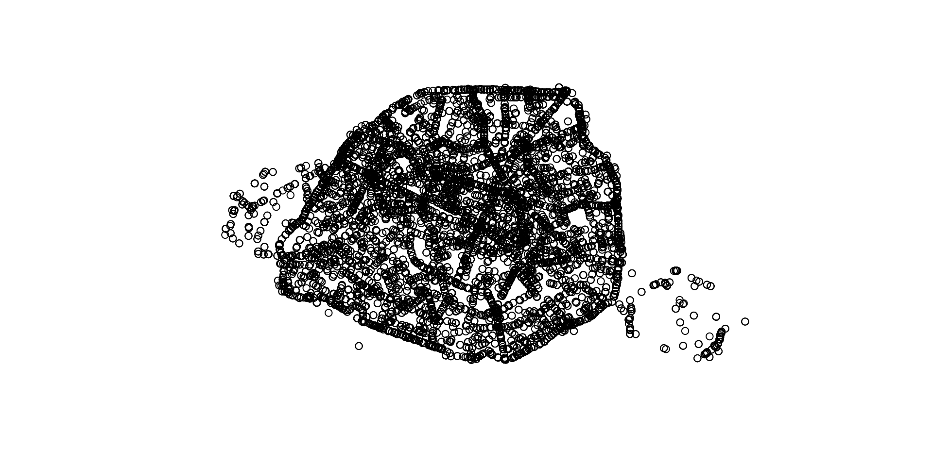 We need to convert this data.frame into a spatial object (sf) using the st_as_sf function. Simply specify the column names containing the coordinates and the projection, here CRS = 4326 (WGS 84). We then transform this data into CRS = 2154 (Lambert 93).